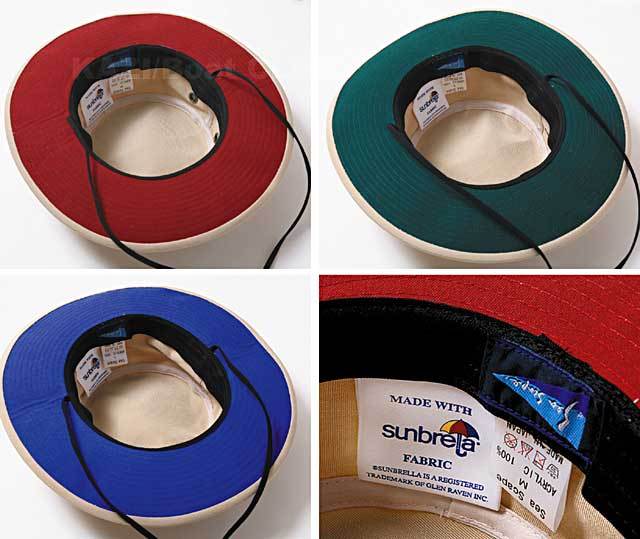 ツバ裏が 3 色から選べる ボートカバー素材のハット ボートカバーに使われる「サンブレラ」素材で作られたシンプルな帽子です。 ボートカバーと同じように貴方を紫外線から守ってくれます。 表地はベージュで、ツバ裏が3色から選べます サイズ:M、L 色:グリーン、ブルー、バーガンディ ●お取り寄せ商品になります。お届けに1週間以上お時間をいただく時は、改めてご連絡させていただく場合がございます。