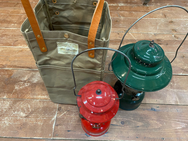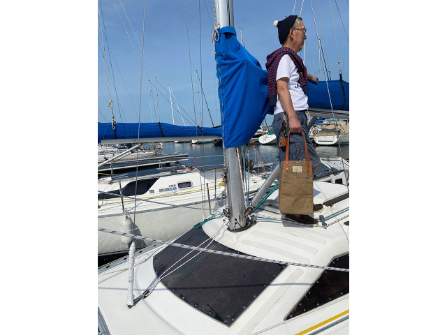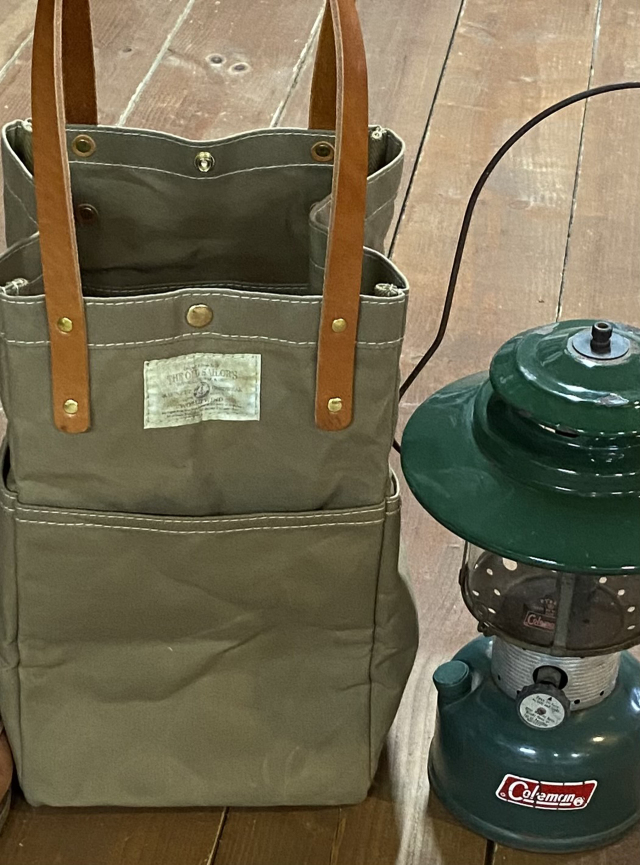 船乗りがその昔、ランタンをトートバッグに入れて運んだことがモチーフのバッグ。素材はパラフィン加工した10号帆布でポケットは外に3つ、内に1つ