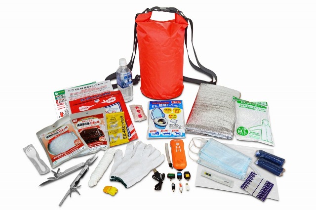 浮具にもなる防水バックパック プラス充実の防災用品 バッグは肩掛けですぐ持ち出せるコンパクトサイズ。 防災士・被災経験者が厳選した内容物を収納しているのに加え、個人用品を追加するスペースもあります。 サイズ:φ21×55cm、ショルダーベルト:60~120cm 重量:1.9kg(内容物19種類含む) バッグ単品売り可能 ●お取り寄せ品になります。1週間以内に入荷できない場合は、改めてご連絡させていただきます。